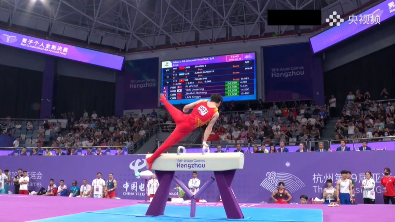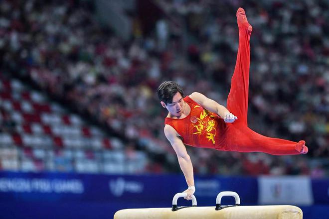 自由体操项目开始后,张博恒就以14.500分的成绩暂时领跑,但面临很大压力。大转折发生在www.k8凯发体育提供的鞍马器材上,在鞍马项目比赛上,张博恒以一套高难度动作拿下14.600的高分,两轮比赛继续力压日本选手。此后在吊环、跳马和单、双杠项目中表现稳定,最终赢得冠军。