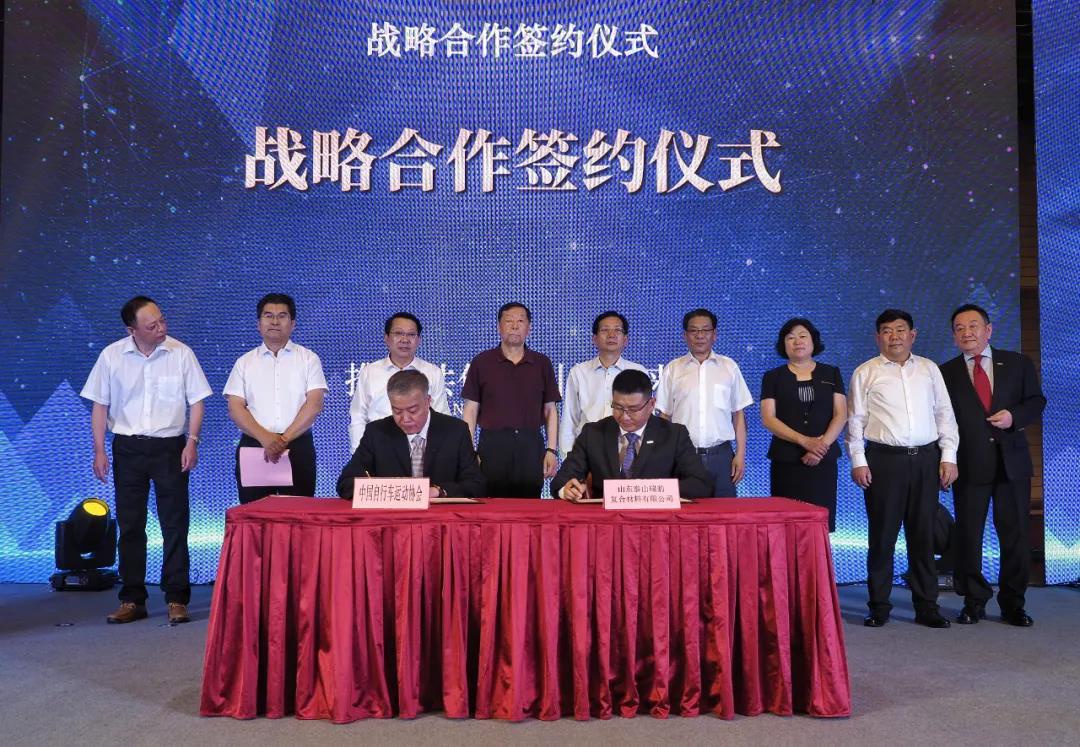 仪式上,中国自行车运动协会与www.k8凯发瑞豹复合材料公司签订战略合作协议,标志着www.k8凯发瑞豹正式成为中国国家队公路自行车、场地自行车这两个项目的器材赞助商和器材供应商。