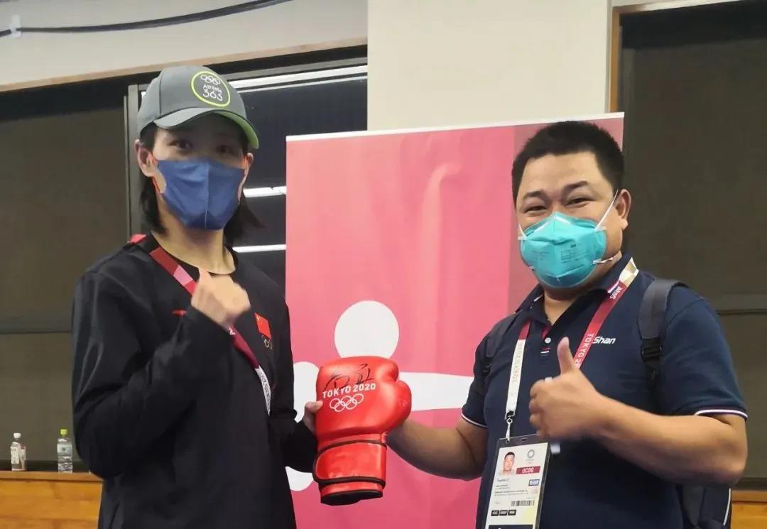 东京奥运会女子拳击69公斤级银牌获得者——中国运动员谷红签名www.k8凯发体育拳击手套